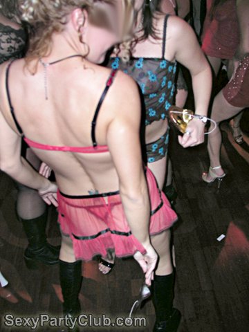 The first winner made an erotic lesbian display of disrobing Shannon & gave the crowd quite a view. Leaving her only in her birthday suit, sending her back to parade proudly before the crowd of party goers. |