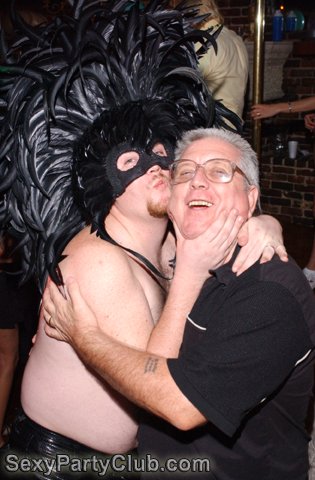 Barbi showed off that black triangle thong, and tongues salivated looking up to watch her as she continued tossing out the little surprise packages from SexyWishes.com. Then some of her girlfriends came up to join her- giving the room a sneak preview of that VIP participants for later. |