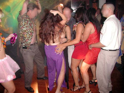 Then when the dance floor began getting too crowded, All the ladies danced their way up to the main show stage and stripped Barbi naked! |